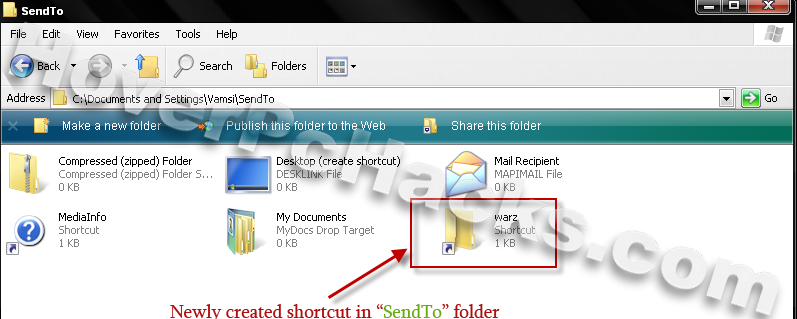 | We all know how famous is windows xp, There are so many tricks to explore like adding some buttons to right click etc.., To do these tricks you do not require any external softwares. So lets explore some of the tricks and hacks. Note: Some of the tricks may require administrative privileges and may also require to modify your windows registry, So please make a back up of your registry. 1) Add "Open New Window" to right click: The trick to do is pretty clear and simple. Just navigate to Registry by Start > Run > type regedit. - From the opened registry window navigate to "HKEY_CLASSES_ROOT\Directory\shell". - Now right click on "shell" and select "key" and create a new key named "Open in New Window". - Now right click on "Open in New Window" and create a sub key named "Command". - Now in the right window double click on "default" and set the value data as "explorer %1" That's it you're done. In any case if you wish to undo the changes just delete the created values. 2) Add item to "SendTo" menu: This more simple trick which don't require any registry editing - Simply navigate to My Computer > double-click the drive where Windows is installed, which is usually drive C. - Double-click Documents and Settings" and again Double-click "particular user(in my case it is "vamsi")". - Now open "SendTo" folder and create a new shortcut by Right click on blank space > New > Shortcut. - Click "Browse" and select a "Drive/Folder/File" to add to "SendTo" menu. - Click "Finish" and you're done. Note: Generally the "SendTo" folders is kept hidden by default, To unhide the folder just go to "Documents and Settings" and navigate to Tools > Folder Options and check the radio button "Show hidden files and folders". Now you can see all the hidden files and folders.(Click here to see How to image) 3) Clear "Open With" menu: When you right click on a file or program and select "Open With" you will see a bunch of programs to open a program, One time or other you may see unwanted recommended programs list in open with. Fortunately their is a way to to clean. In windows xp the "open with" listing of a file type is stored in "HKEY_CURRENT_USER \ Software \ Microsoft \ Windows \ CurrentVersion \ Explorer \ FileExts \ "HKEY_CURRENT_USER \ Software \ Microsoft \ Windows \ CurrentVersion \ Explorer \ FileExts \ "HKEY_CLASSES_ROOT\. "HKEY_CLASSES_ROOT\. "HKEY_CLASSES_ROOT\SystemFileAssociations\ So, Now you know the registry locations, If you want to remove any unwanted listing select the progid in right pan and right click on it and click delete. 4) View Thumbnails bigger in XP: This is small registry hack by which you can make your thumbnails bigger in windows xp. - Open Registry by Start > Run > type regedit. - Navigate to "HKEY_CURRENT_USER\Software\Microsoft\Windows\CurrentVersion\Explorer" - Now look for the DWORD value "ThumbnailSize". - If you find the DWORD value skip this step aand if you din't find the value follow this step. Right click on the right-pan "New > DWORD value > name it as "ThumbnailSize"(No spaces between the name). - Now double click on "ThumbnailSize" now enter the "value data" of your own. Note: If you choose the base as Decimal then the min value is 32 and max is 256, If you use Hexadecimal the min is 20 and max is 100. That's it it your are good to change the default thumbnail size in XP. 5) Manage windows XP start-up: If you many programs at windows start-up it may slow down you system performance so remove some unwanted start-up programs which in return gives you faster booting time an good system performance. - Open System Configuration Utility" by Start > Run > type msconfig. - Now click in "Start up" tab and deselect unwanted programs and click ok. That's it your done with removing unwanted programs at start-up. Note: To modify these setting you may require administrative privileges. 6) Remove shortcut arrow: You may be wondered about how to remove shortcut arrow from desktop icons, please follow the steps ;-) - Open Registry by Start > Run > type regedit. - Navigate to "HKEY_CLASSES_ROOT\lnkfile" (l = L and not i) - just delete the DWORD value "IsShortcut" You're done. 7) End Unresponsive tasks automatically: It is very frustrating when the system freezes due to unresponsive programs and you have to wait until the system is online or until you end the unresponsive task. As for me it is good to end the unresponsive task automatically after some milliseconds, So to do that follow this steps. - Open Registry by Start > Run > type regedit. - Navigate to "HKEY_CURRENT_USER/Control Panel/Desktop" - Double-click on "AutoEndTasks" and change the "value data" to "1". - Now Double-click on "WaitToKillAppTimeout" and change the "value data" to number of milliseconds you want XP to wait before terminating the unresponsive application. Then, click OK. That's it your done. 8)Limit the system usage time of a particular user: If you wish to set a time-limit to a particular user use this, - Open Command prompt by Start > Run > type cmd. - Now use this command "net user Example: net user vamsi /time:M-F, 08:00-20:00 By this you can let a user called "vamsi" to login from Monday to Friday on 8AM - 8PM or you can also specify single days like this "net user vamsi /times:M-F,5am-8pm;Sa,11am-12pm;Su,6am-12am" If you wish to disable this time limit just follow this command "net user accountname/times:all" That's it you'r done. Note: Specify the days as "M,T,W,Th,F,Sa,Su" 9)Disable "Send Error Report": To disable "send error report to microsoft" every time a program crashes do this, - Open control panel > Performance and Maintenance > System. - Now click on advanced tab > Error Reporting. - Now check the radio button "Disable Error Reporting" and click ok. 10) Create your own logon massege: To create your own logon meassege folloe these steps, - Open Registry by Start > Run > type regedit. - Navigate to "HKEY_LOCAL_MACHINE\SOFTWARE\Microsoft\WindowsNT\CurrentVersion\Winlogon" - Now Right-click LegalNoticeCa
